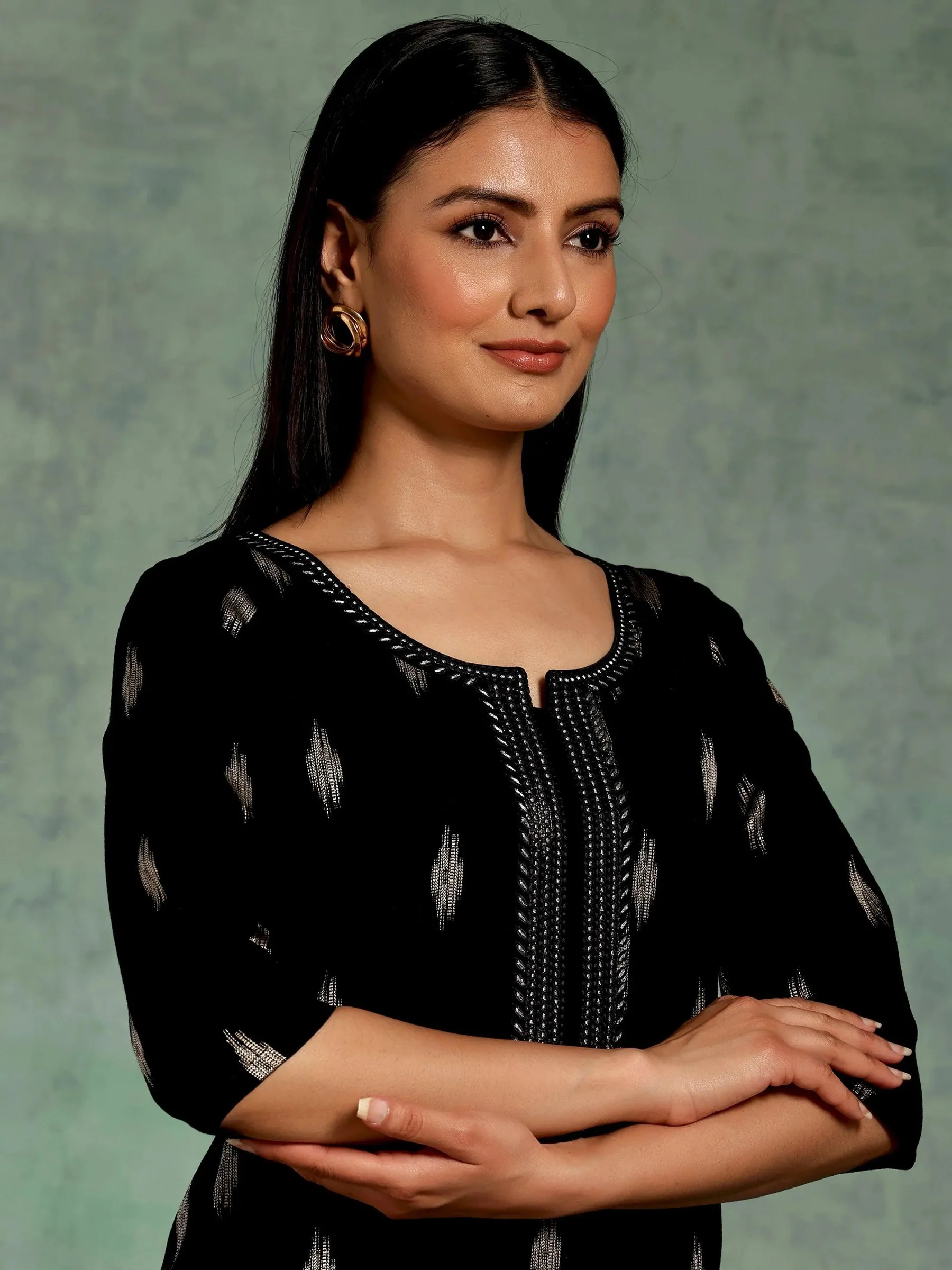 Black Woven Design Rayon Straight Kurta