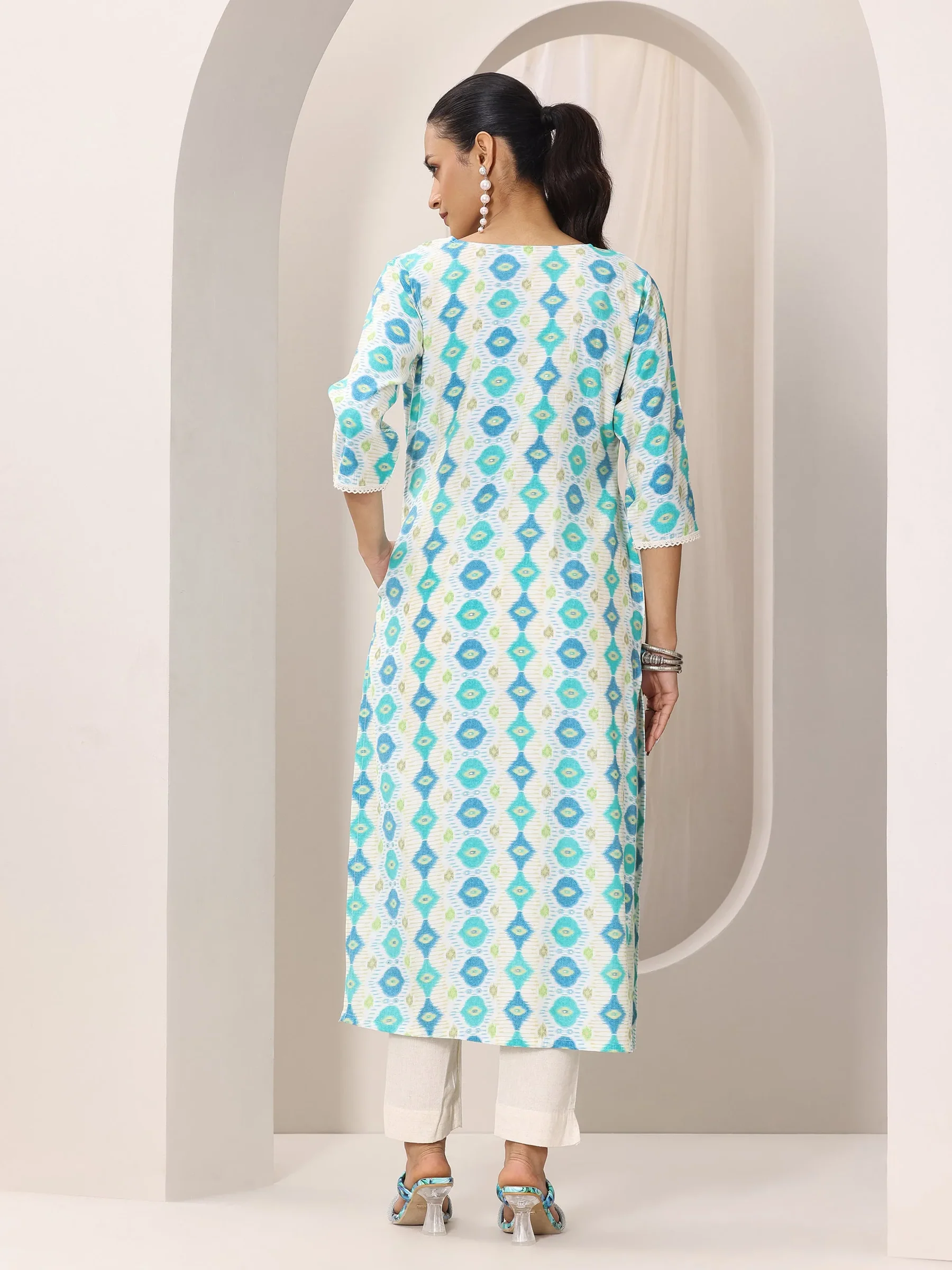 Blue Printed Silk Blend Straight Kurta